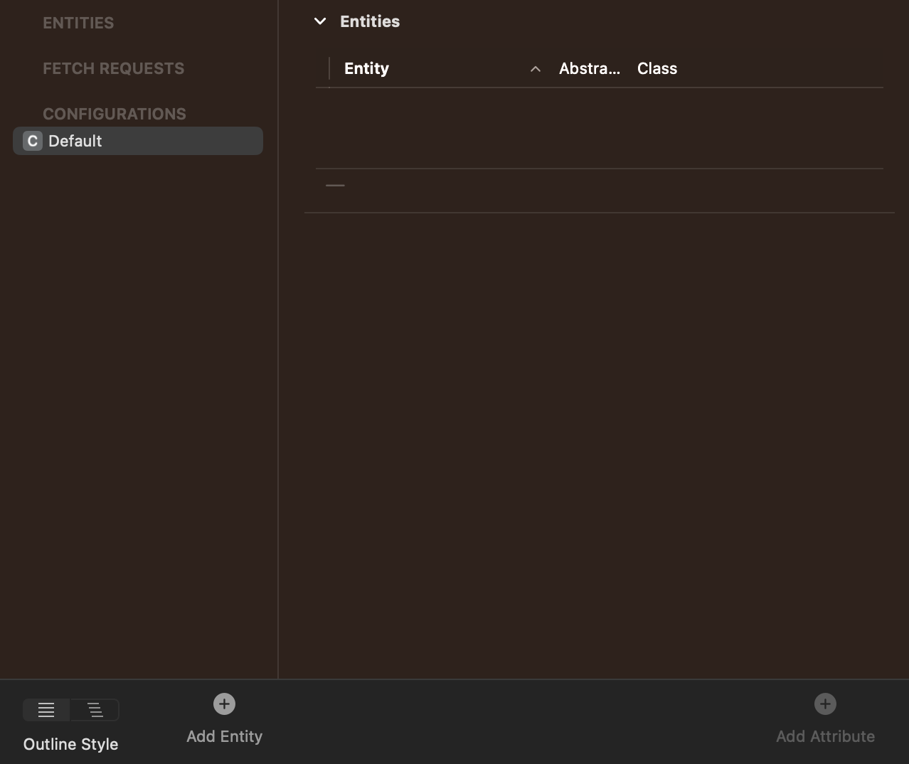 Xcode에서 처음으로 프로젝트를 만들 때, CoreData를 사용한다는 체크박스를 체크하면 자동으로 코어데이터 모델 파일을 하나 만들어줍니다. 확장자는. xcdatamodeld, 파일명은 보통 프로젝트명(Product Name)으로 생성됩니다. 파일명은 변경해도 됩니다.
