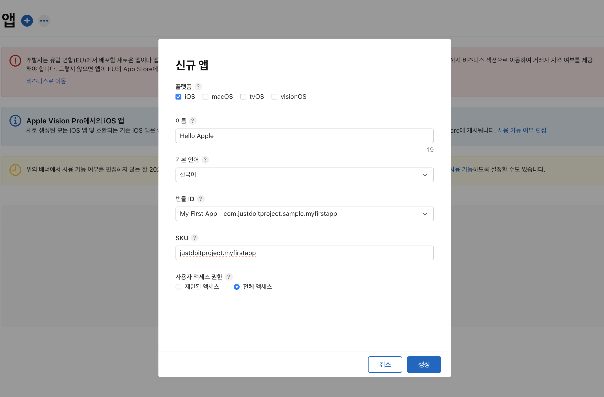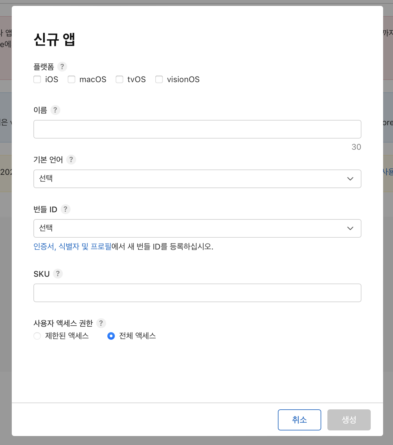 - App Store Connect 페이지에서 앱 추가하기 - App ID 이용