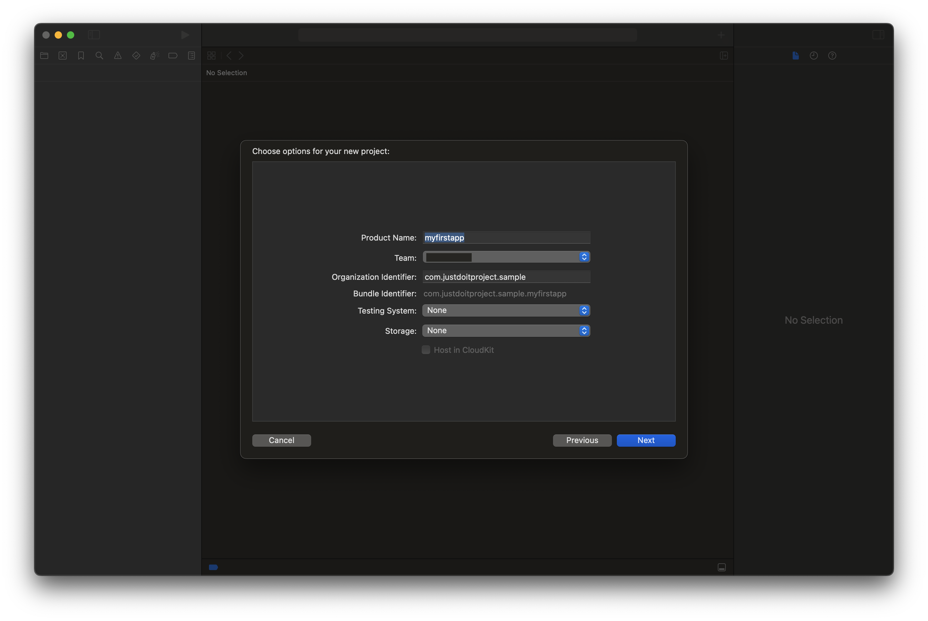 - Xcode에서 project 생성하기 - App ID에 등록한 Bundle ID 이용