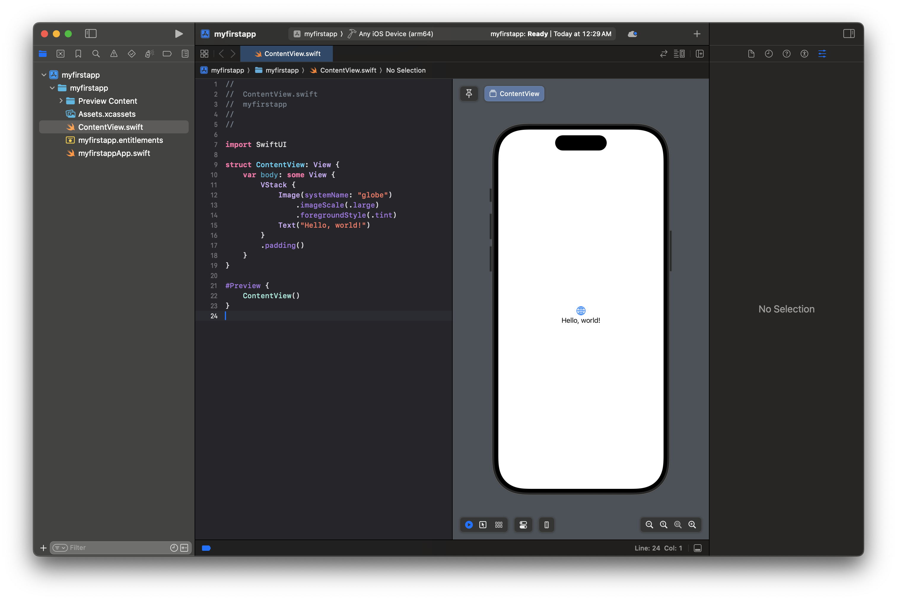 어떤가요. 실제 아이폰에서 Hello world가 잘 나오고 있나요?