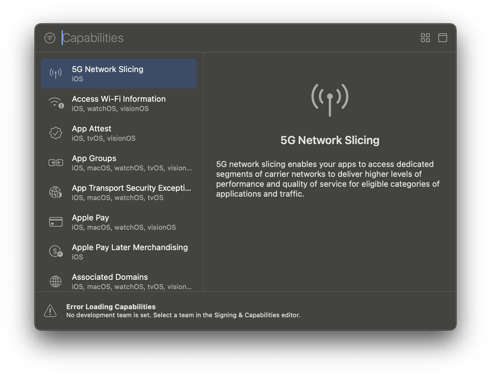 No Development team is set. Select a team in the Signing & Capabilities editor