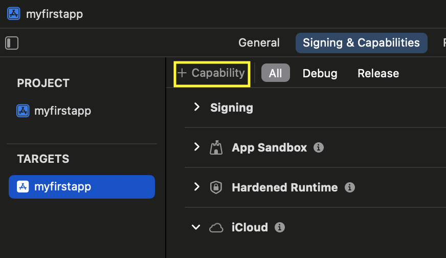 4단계: Xcode에서 iCloud Capability 추가하기