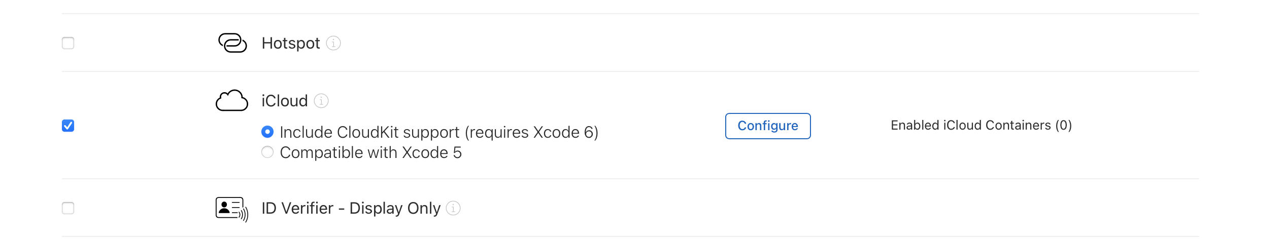 Enabled Capabilities에 iCloud가 추가된 것을 볼 수 있습니다.